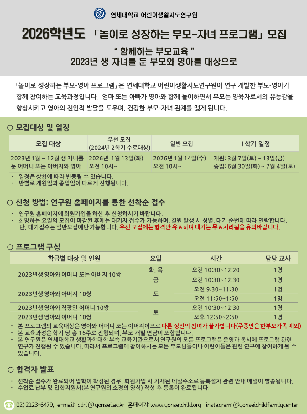 2026학년도 놀이로 성장하는 부모-자녀 프로그램(2023년생)